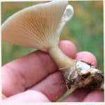 You can see the difference by looking at the mock oyster’s orange gills – they stay brightly orange colored even after the cap fades. On top of that, the mock oyster mushroom has a strong skunky smell that you won’t find in hairy oysters.