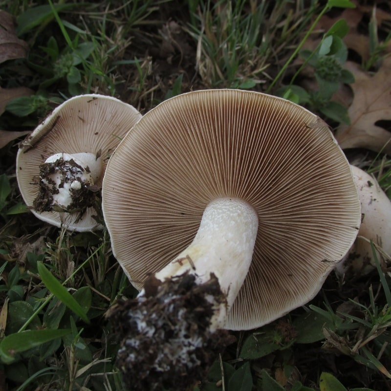 This edible species has a similar shape and gill color to those of younger poison pie mushrooms. The meadow mushroom, though, has a chocolate-brown spore print (versus the rusty-brown of Hebeloma) and also doesn’t smell like radishes. Meadow mushrooms also have gills that are free from the stem, while the poison pie’s gills are attached to the stem.