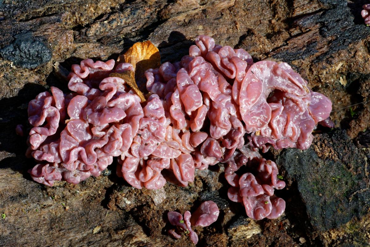 It finally found its final scientific name in 1967, when Canadian mycologists James Walton Groves and D.E. Wilson created a new genus for it called Ascocoryne. The genus name breaks down as “Asco-” for ascomycota (fungi that make sexual spores inside sac-like structures called asci) and “coryne” from Greek for “knotted rod.” The species name “sarcoides” means “fleshy” in Greek, so named because the pinkish-purple flesh of the fungus looks a bit like raw meat.
