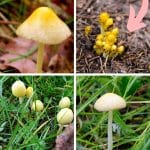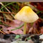 The yellow shield is also a gilled mushroom with a deep egg-yolk yellow cap. At first glance, it looks very similar to the sunny side up mushroom. There are some key differences, though. The yellow shield grows on dead or decaying wood, not soil or dung. These mushrooms also last longer than the ephemeral Bolbitius.