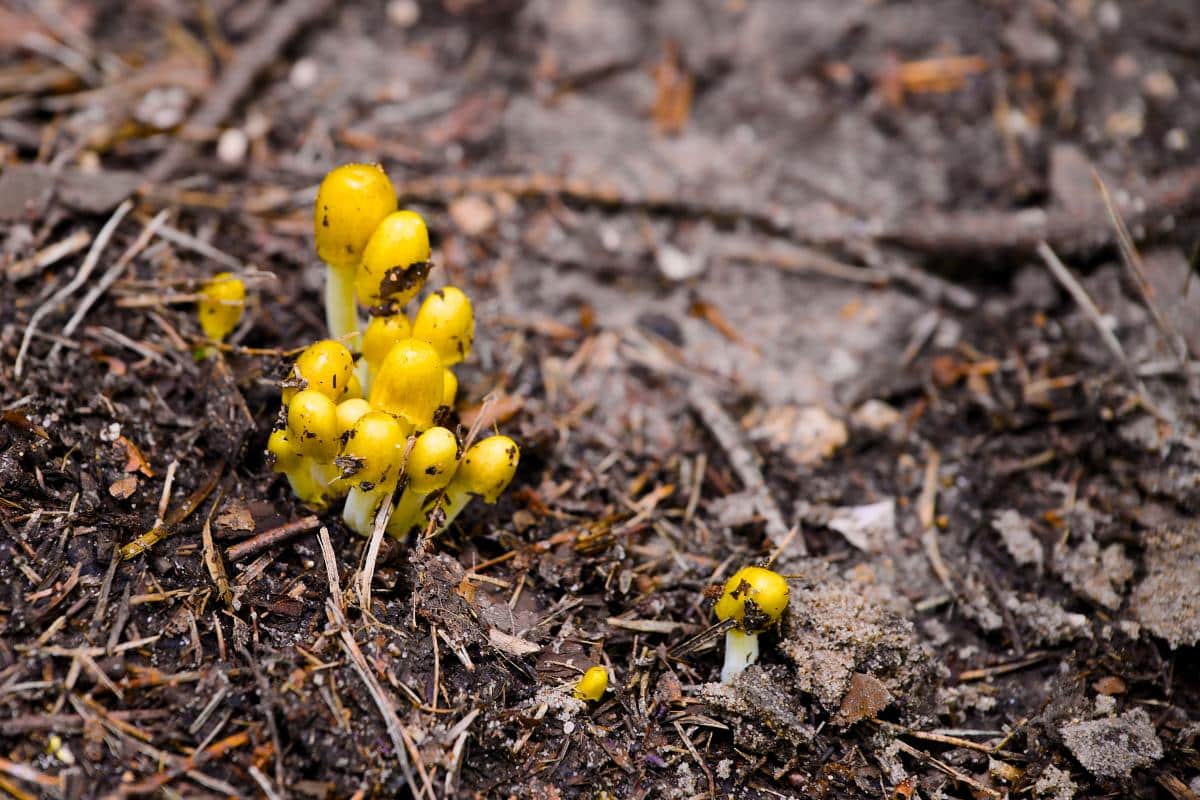 Sunny side up mushrooms are short-lived — they usually appear and completely die off and meld back into the earth in just 24 hours, and oftentimes less than that. Their lifecycle is a quick one!
