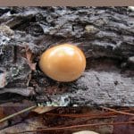 The veiled polypore (Cryptoporus volvatus) looks like a white or tan hard bubble popping out of a conifer tree. It resembles a little puffball, except it’s hard and often shiny. It’s hard to tell it’s even a fungus at all, at first glance. This species causes lots of confusion, even among experienced foragers.